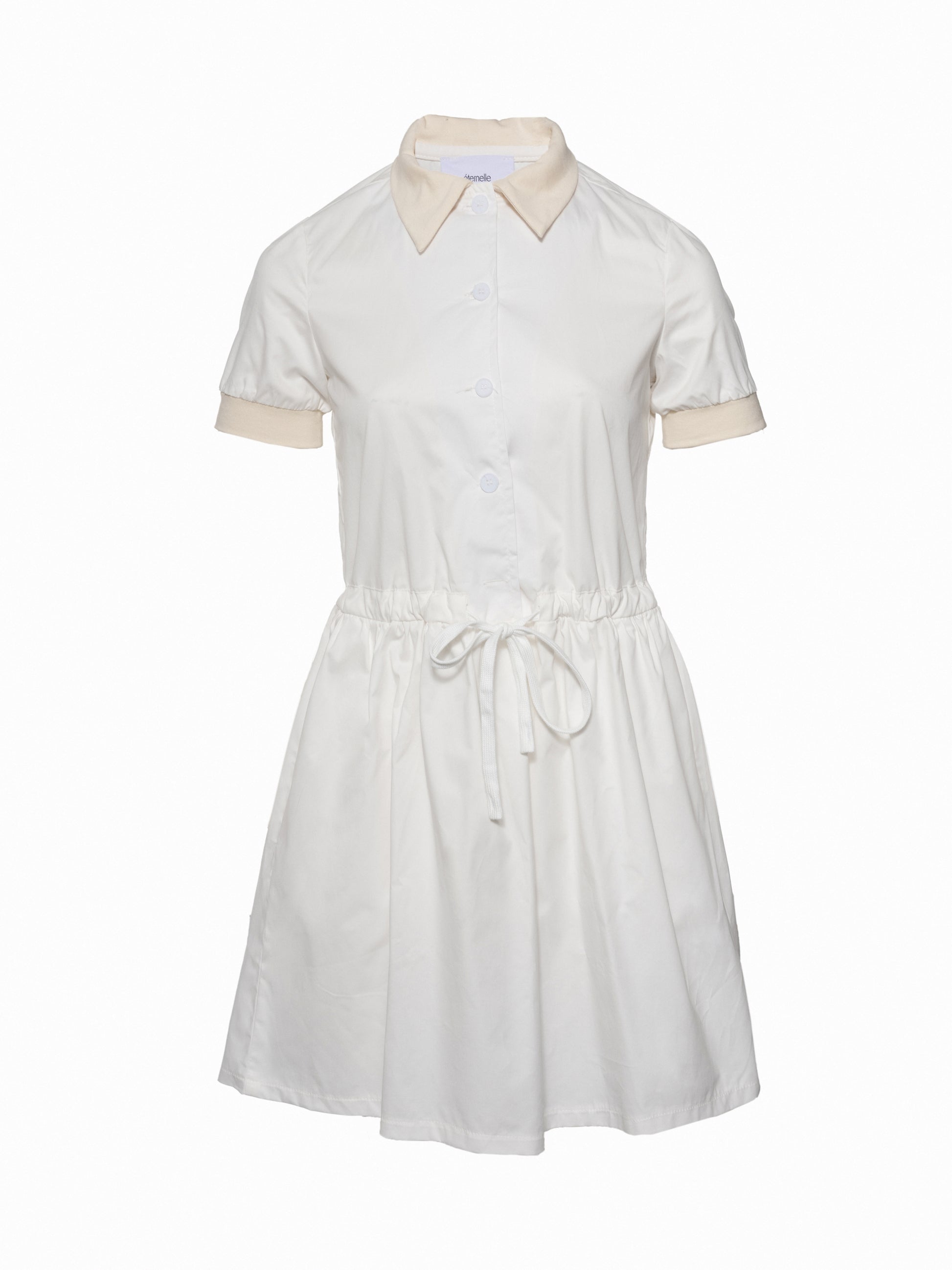 שמלה מיני מבד כותנה צווארון פולו מבד פיינריב כותנה בשילוב כפתורים ושרוך במותן